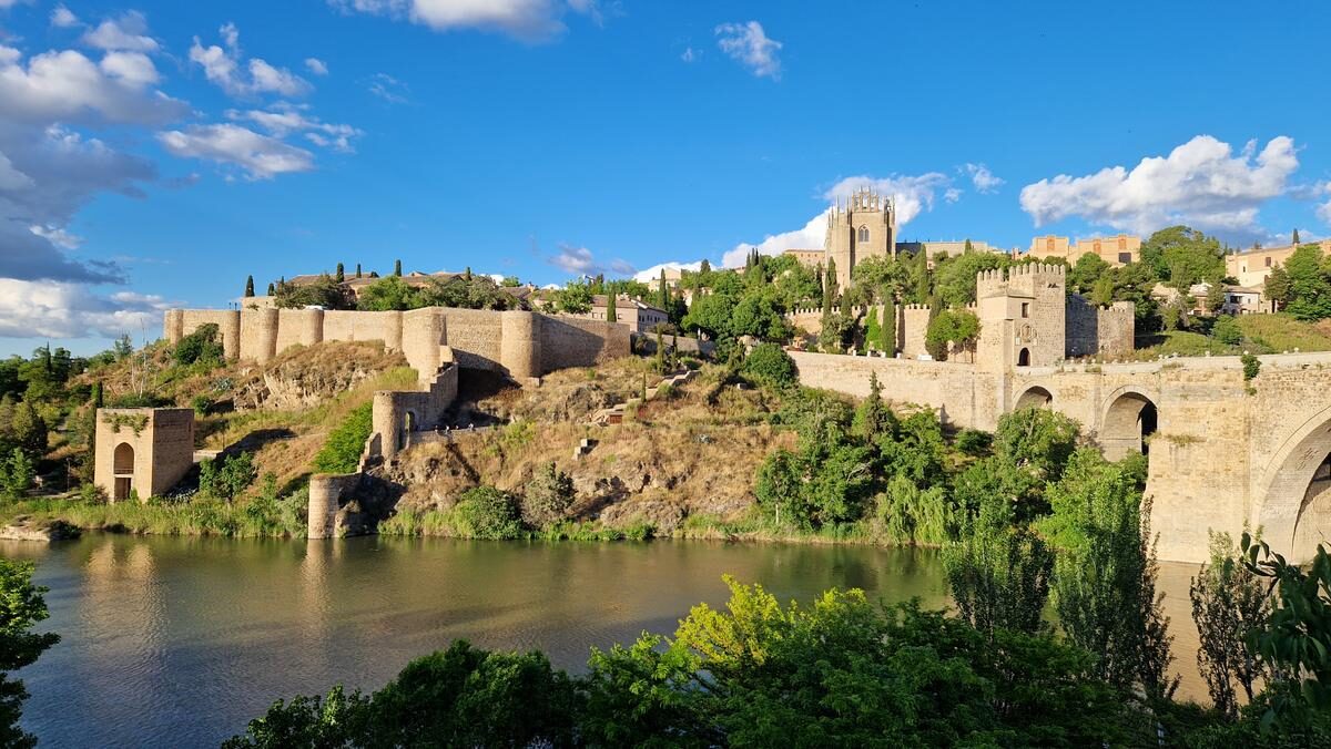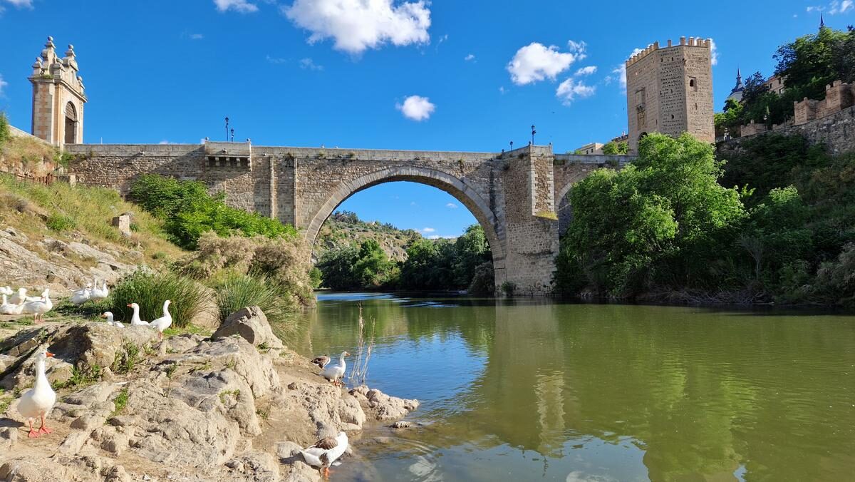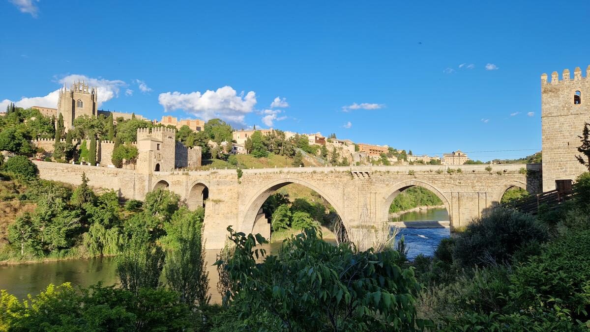 “El puente de Alcántara se levanta donde el río Tajo se estrecha a su paso por Toledo en su parte oriental, a los pies del castillo de San Servando y junto a la puerta de Alcántara. Es una construcción romana levantada en el siglo III d.C. que se convirtió en zona de paso. Durante el Medievo fue entrada obligada para todo peregrino, ejerciendo también la función de control de mercancías y de portazgo, labor ésta realizada por el corregidor y alcalde de la ciudad“.