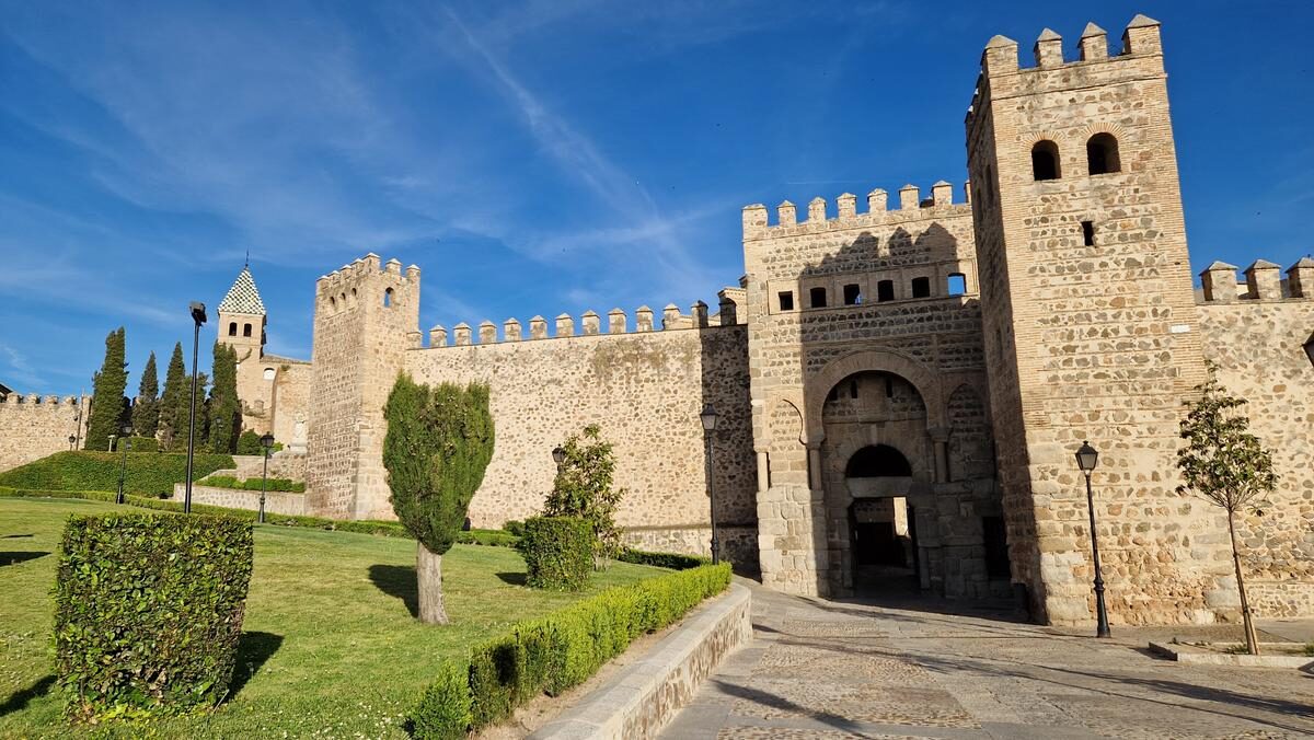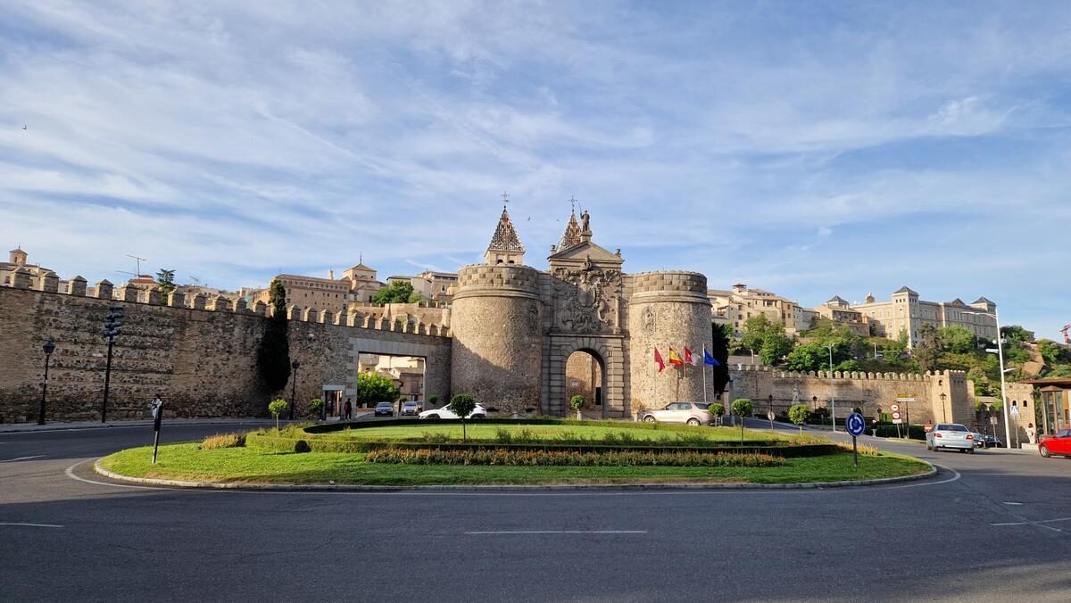 Accedemos a Toledo a través de la imponente Puerta de Bisagra o Puerta Nueva de Bisagra, una entrada monumental abierta en las murallas de la fachada norte de la ciudad.