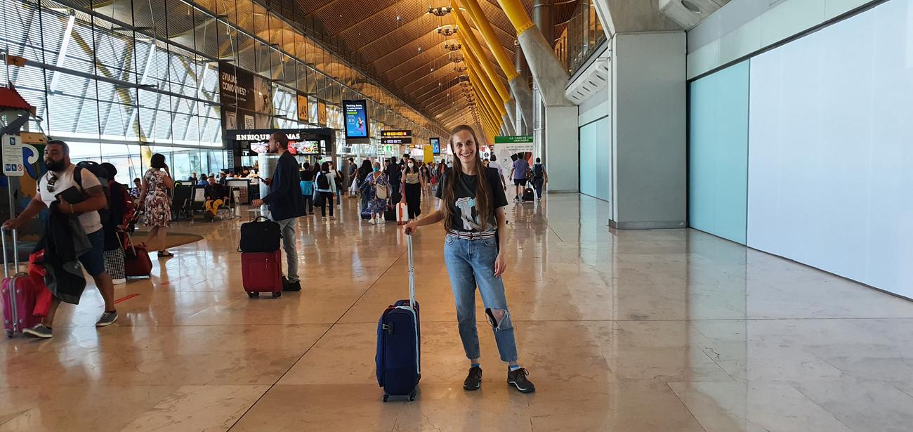 Aterrizamos puntuales a las 17 horas en la terminal T1 del aeropuerto de Barajas (Madrid) y recogemos el equipaje sin incidencias. Al llevar mi maleta envuelta con su funda de AliExpress, se localiza de forma rápida, sin riesgo a que otro se la lleve por error.
