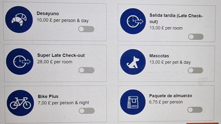 Al hacer el check-in, nos ofrecen varias opciones con coste adicional.