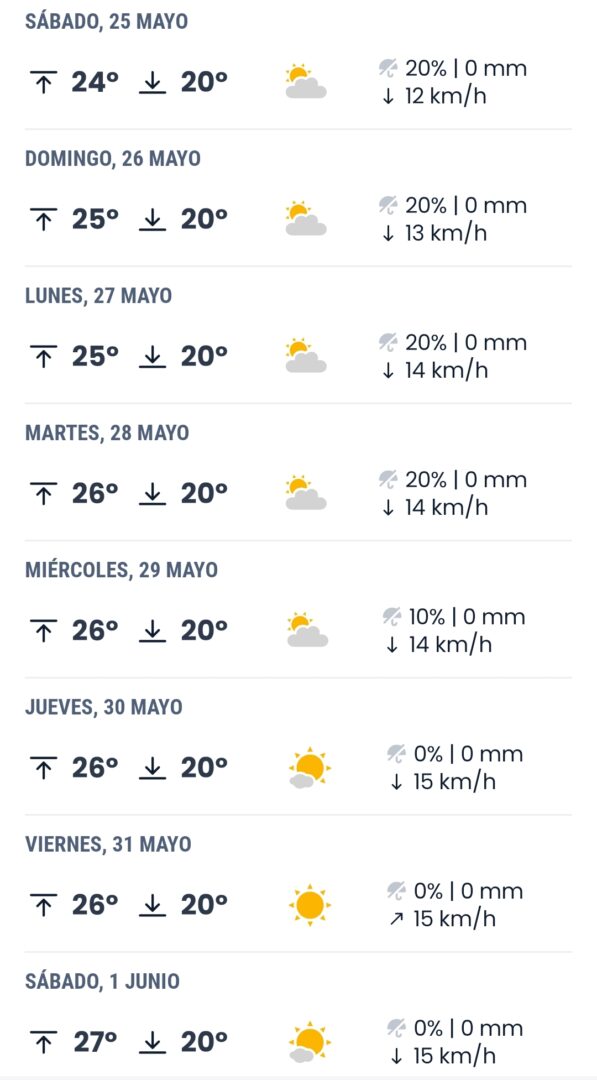 Las previsiones meteorológicas no podrían ser mejores por lo que solo nos llevamos ropa ligerita que, por suerte, no ocupa mucho espacio.