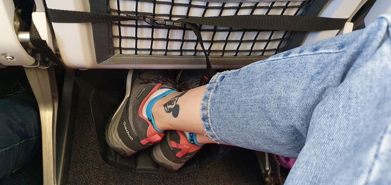 Adoro viajar. Lo único que me agobia de volar es tener que llevar las piernas plegadas como sardinas en lata. Por ello siempre que hago viajes largos reservo los asientos en salida de emergencia, pero los de la fila central, no los de los laterales, ya que en los míos puedo poner la maleta de cabina a modo de reposapiés.