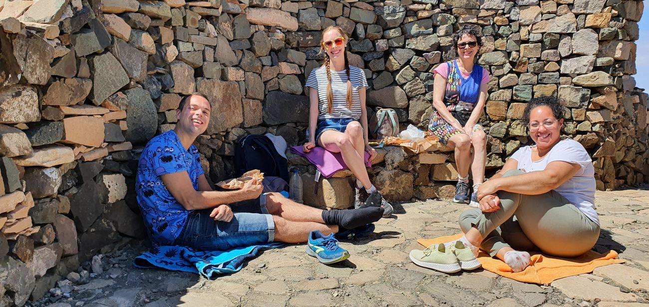 De hecho elegimos este punto en la cumbre para llevar a cabo nuestro picnic del día. Aunque hace un viento exagerado, hay una formación circular de rocas donde no sopla nada y se está de lujo.