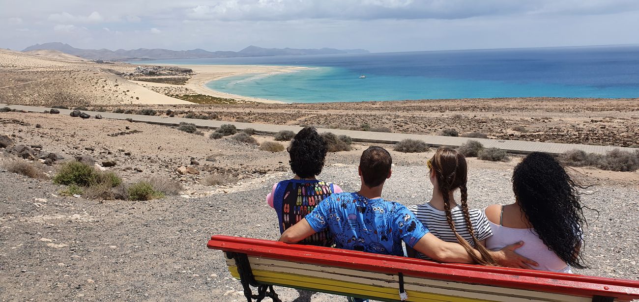 El mirador, con un banco estratégicamente colocado con vistas a la playa de Sotavento, es un lugar precioso. Esa agua, esas dunas, esa arena… ¡¡¡Me encanta!!!!