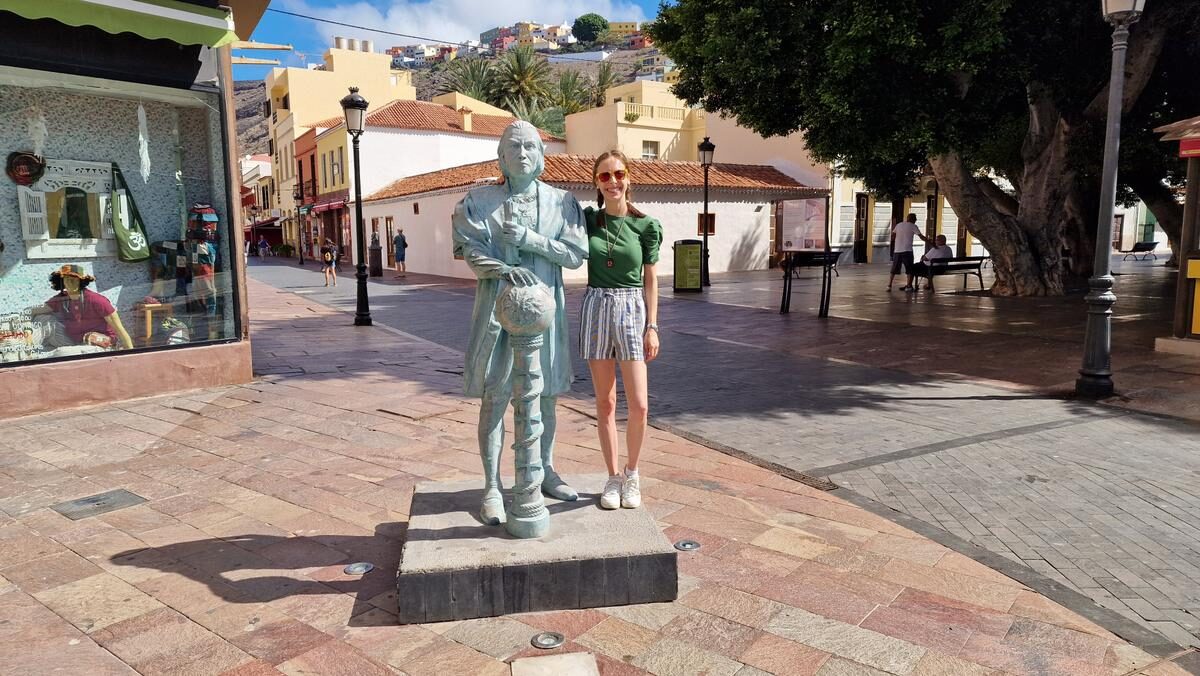 • La estatua de Cristóbal Colón. La Gomera también es conocida como “la isla colombina” porque fue el último lugar de avituallamiento de Cristóbal Colón antes de partir hacia el Nuevo Mundo.