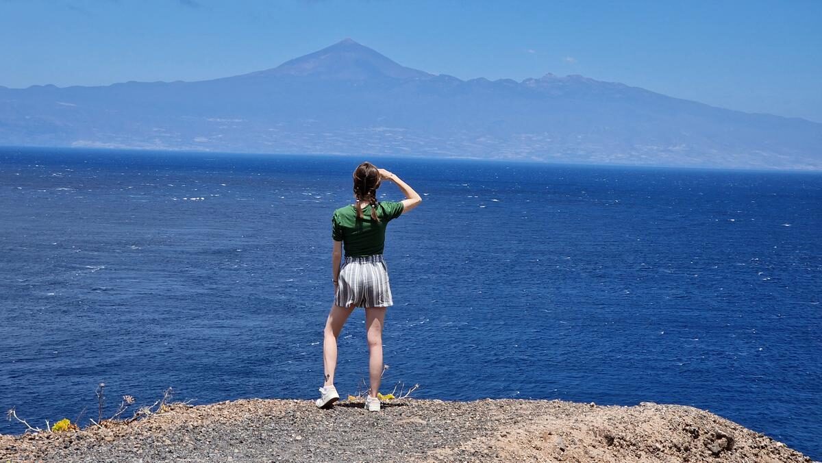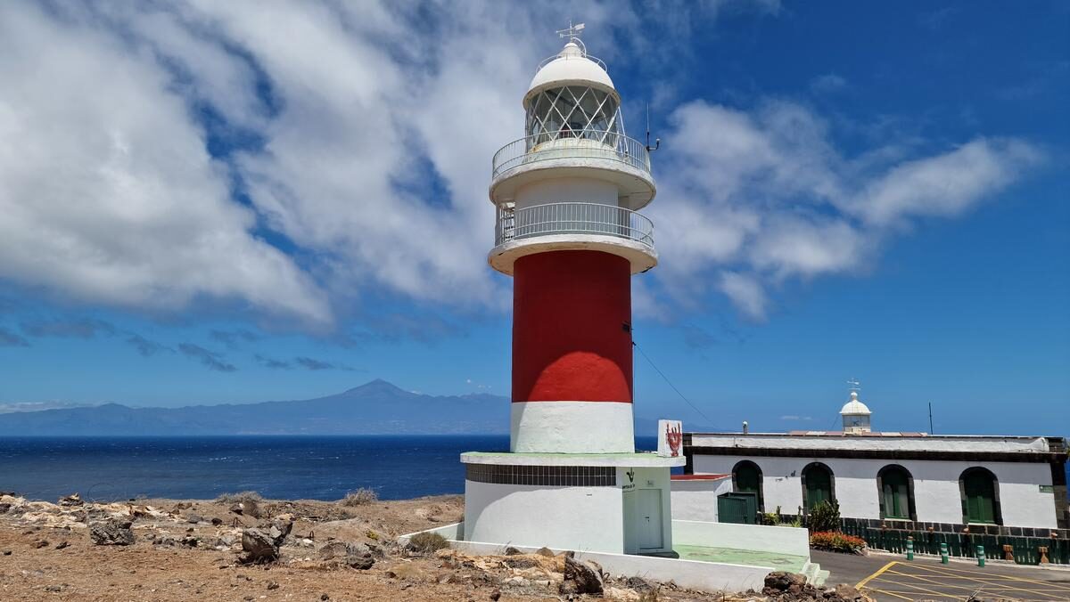 Yo no soy muy fan de los faros así que tras una foto rápida me dirijo corriendo a la parte trasera para contemplar la silueta de Tenerife con el sempiterno Teide. Ha sido genial porque lo vemos mucho más nítido de lo que se veía por la mañana desde la playa de la Cueva. Me parece un lugar de lo más fotogénico e Instagrameable.