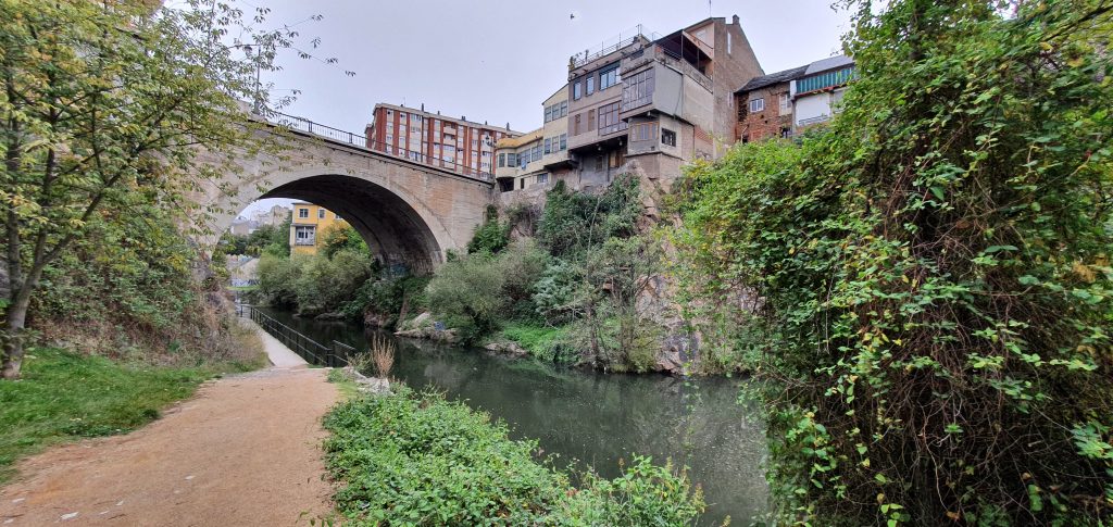 Tardamos 15 minutos en llegar andando desde el hotel al punto de inicio de la ruta, que se encuentra bajo el Puente Cubelos. La verdad es que el hotel está perfectamente ubicado para llegar andando a todos los lugares interesantes de Ponferrada.