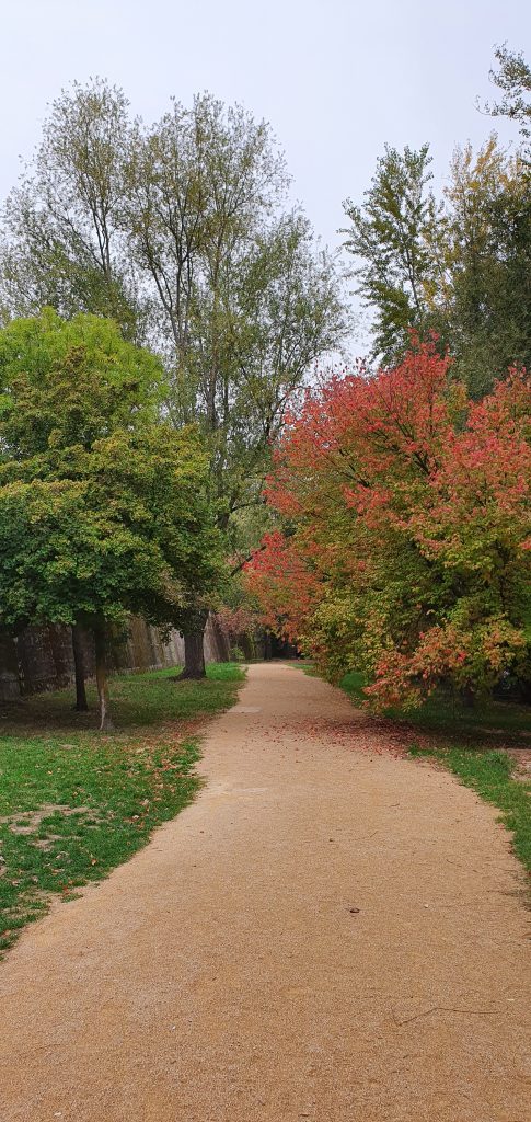 Y en el margen derecho hay un bosque de ¿¿¿álamos / chopos / abedules??? (hice una encuesta en Facebook para saber qué árboles eran y ganaron esos tres por igual, así que sigo sin saber qué árboles son a ciencia cierta…) todos super ordenaditos, lo que me gusta muchísimo.