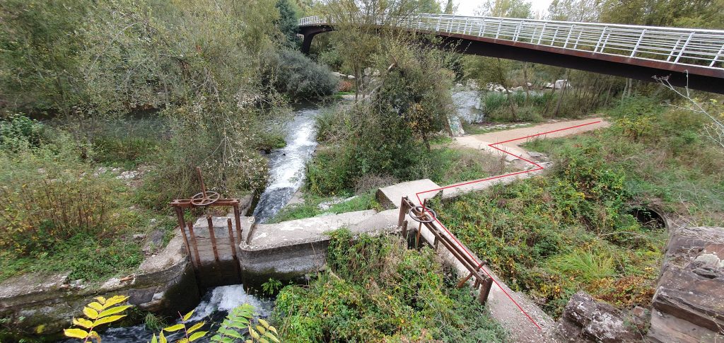 toca desviarse del sendero de forma obligatoria ya que finaliza al llegar a una especie de mini presa y nos obliga a ir de nuevo por un sendero paralelo al río pero en este caso más elevado que el anterior.