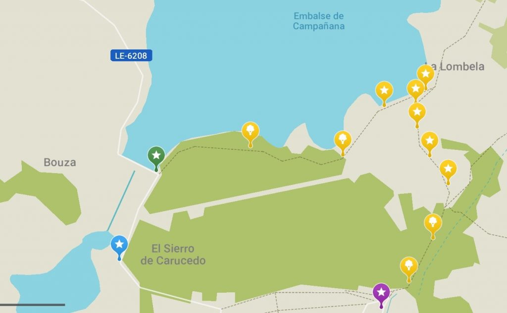 Cogemos de nuevo el coche y a las 15 horas ponemos rumbo al Embalse de Campañana, que hemos visto que está al lado del Lago de Carucedo que tanto nos gustó ayer. Si ponéis en el mapa estas coordenadas, os llevará hasta un bonito mirador desde el que contemplar tanto el Lago de Carucedo como el Embalse de Campañana.