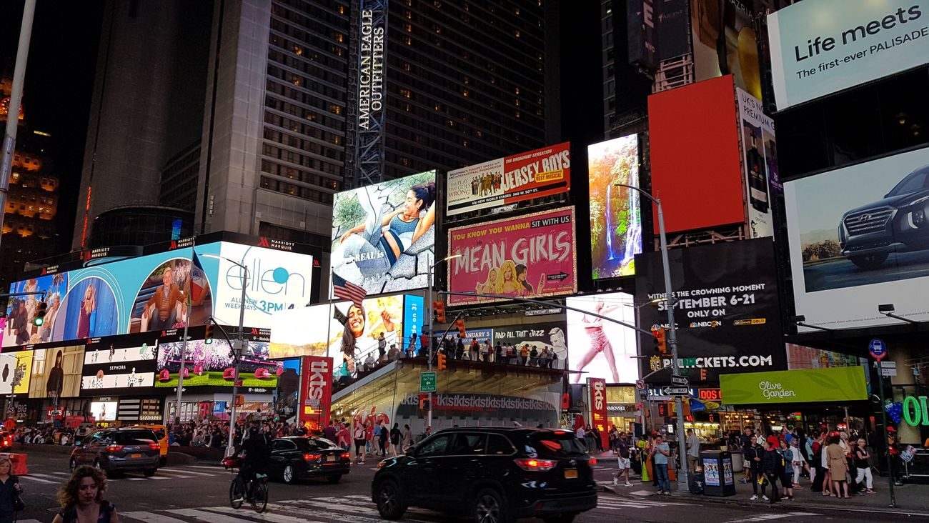 La aplicación del metro “NYC Subway” funciona de maravilla, además de ir indicando offline en qué parada nos encontramos en cada momento, ya que a veces es difícil oír la megafonía o ver los carteles. Hacemos transbordo para finalizar en Times Square – 42 St. Salimos sin saberlo en pleno Times Square. ¡Menuda locura! Ahora entiendo por qué no había nadie en la zona de Brooklyn donde estuvimos… ¡¡¡Estaban todos aquí!!! Recorremos la zona, llenísima de gente, luces, y tiendas.
