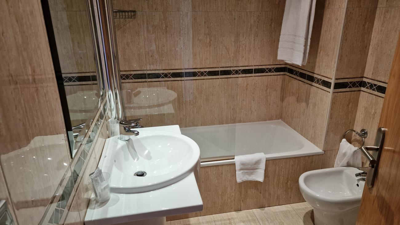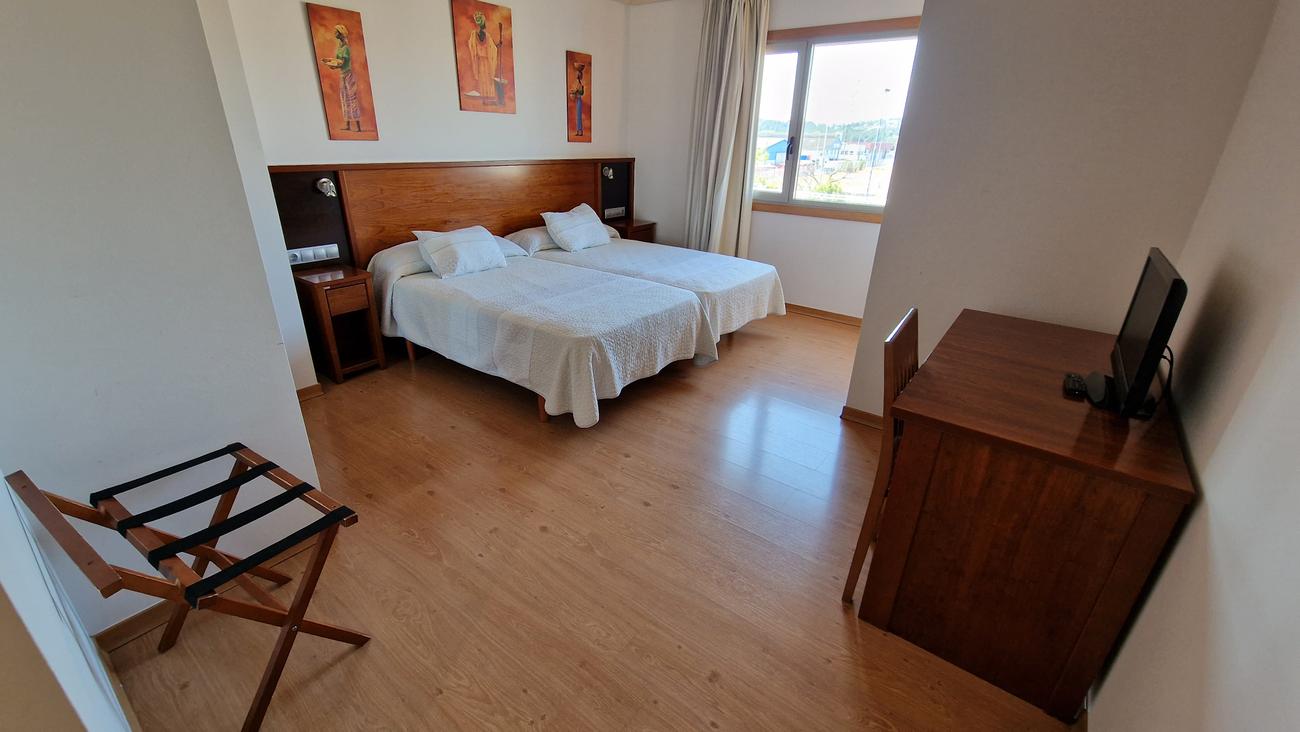 La habitación es genial, enorme y perfecta para nuestra estancia de una noche. El único hándicap, al igual que ocurría con el hotel de Cambados, es que no tiene una neverita para refrescar las bebidas, con el calor tan horrible que hay en el exterior.