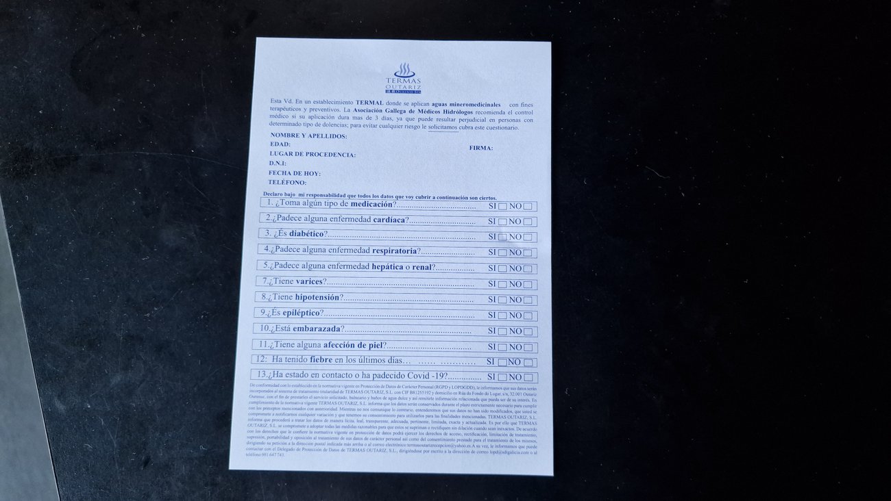 La entrada a las termas de Outariz cuesta 5,7€ por cabeza, lo que nos da derecho a dos horas de uso de las instalaciones. Tenemos suerte porque aunque poseen un aforo limitado, hemos podido pasar sin tener que esperar para entrar.