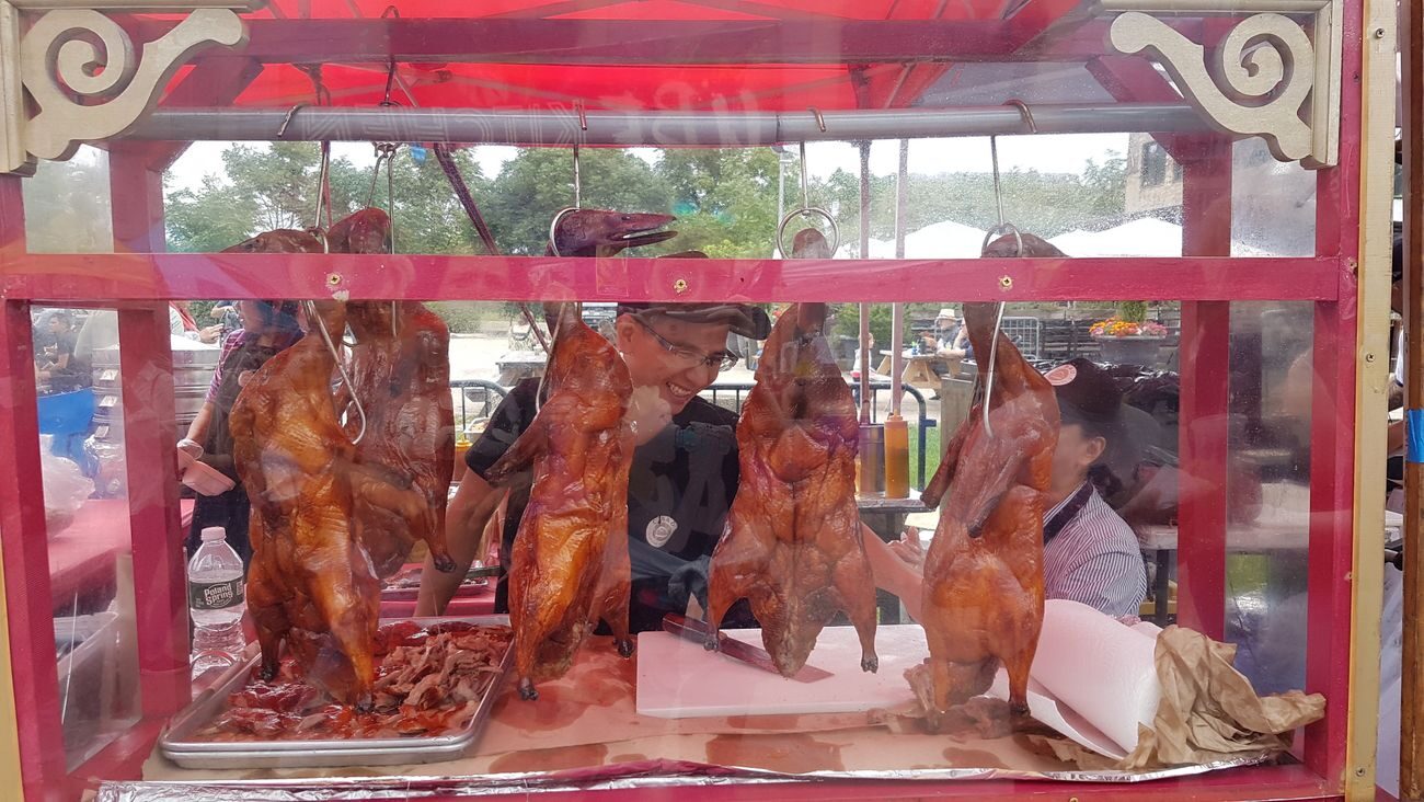 Hay baños y lavabos portátiles. Nos encanta este mercado, tiene un montón de puestos de comida de un montón de países y la mayoría con una pinta deliciosa.