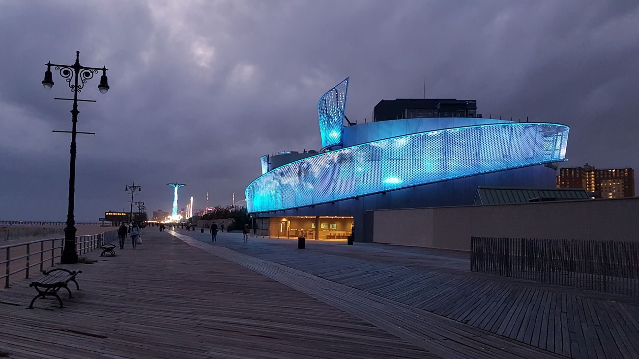 A las 18 horas finalizamos esta parte de la ruta y buscamos una parada de metro para dirigirnos a Coney Island. Finalmente cogemos la línea amarilla – letra Q (Stillwell Av) en la estación de DeKalv Av. Tenía anotado que “se van viendo todas las casitas que hay por el barrio y unas vistas del puente de Verrazano impresionantes”, pero durante gran parte del viaje el metro va lleno y no vemos nada. Decidimos bajarnos, treinta minutos después, en la parada “Brighton Beach” e ir dando un paseo hasta el parque de atracciones Luna Park. Nada más salir al paseo marítimo, sopla un viento exagerado. Recomiendo traer una prenda de abrigo o que por lo menos proteja del viento, porque aquí debe soplar el viento todo el año.