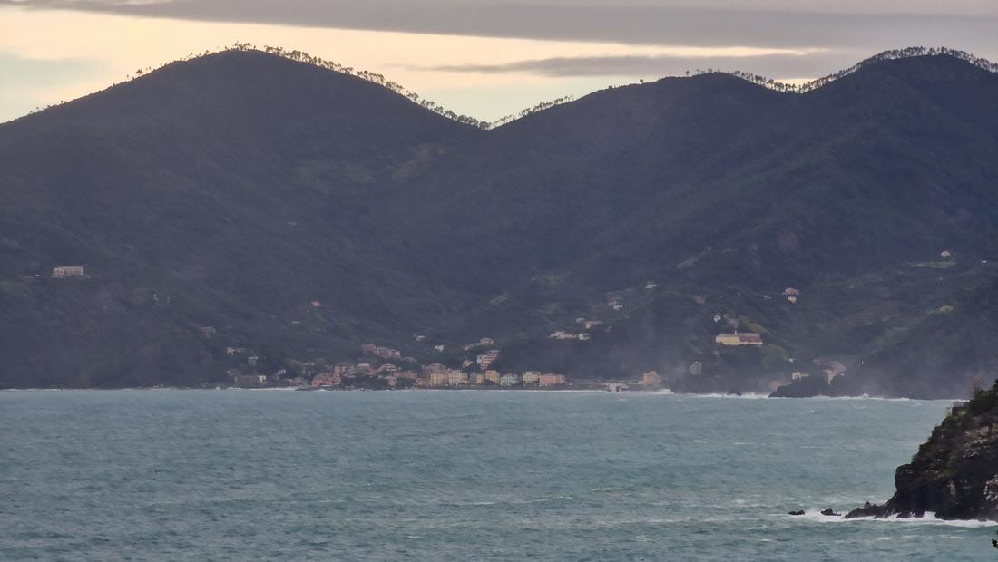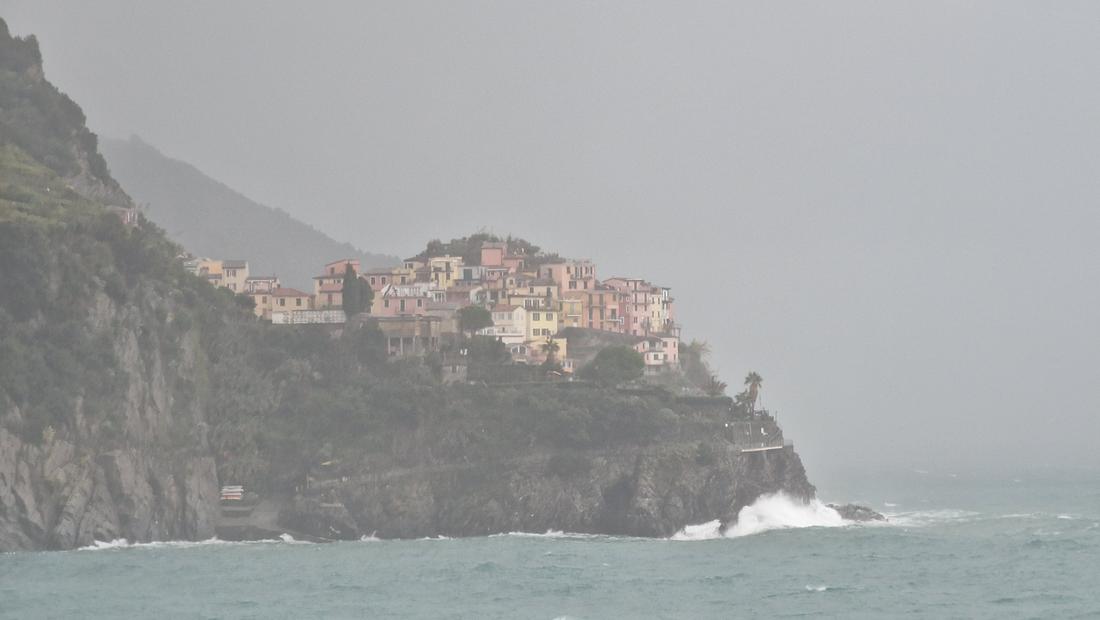 Desde la estación ferroviaria también hay una muy buena perspectiva de Manarola, el pueblo que vamos a visitar a continuación. La foto es malísima por culpa de la bruma…