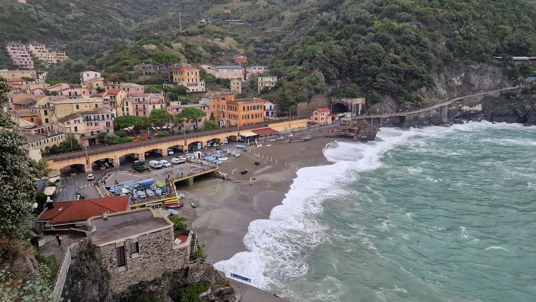 Seguimos avanzando por esa callejuela, que nos va regalando distintas panorámicas hasta llegar al punto más distal del pueblo, la plazoleta Eugenio Montale, con vistas a la estación de tren.