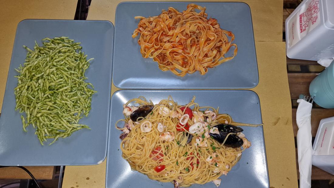 Regresamos al pueblo por el paseo ubicado justo encima del que nos trajo hasta aquí. Traía anotada un área recreativa para hacer un picnic con preciosas vistas pero, en vista de la climatología que nos acompaña, tenemos que buscar un restaurante. El problema es que al parecer el viernes es el día de cierre de la hostelería en Manarola porque solo encontramos un restaurante abierto, Da Aristide. Toca esperar más de media hora para entrar porque lógicamente está lleno al ser el único que sirve comidas. Pedimos para compartir: