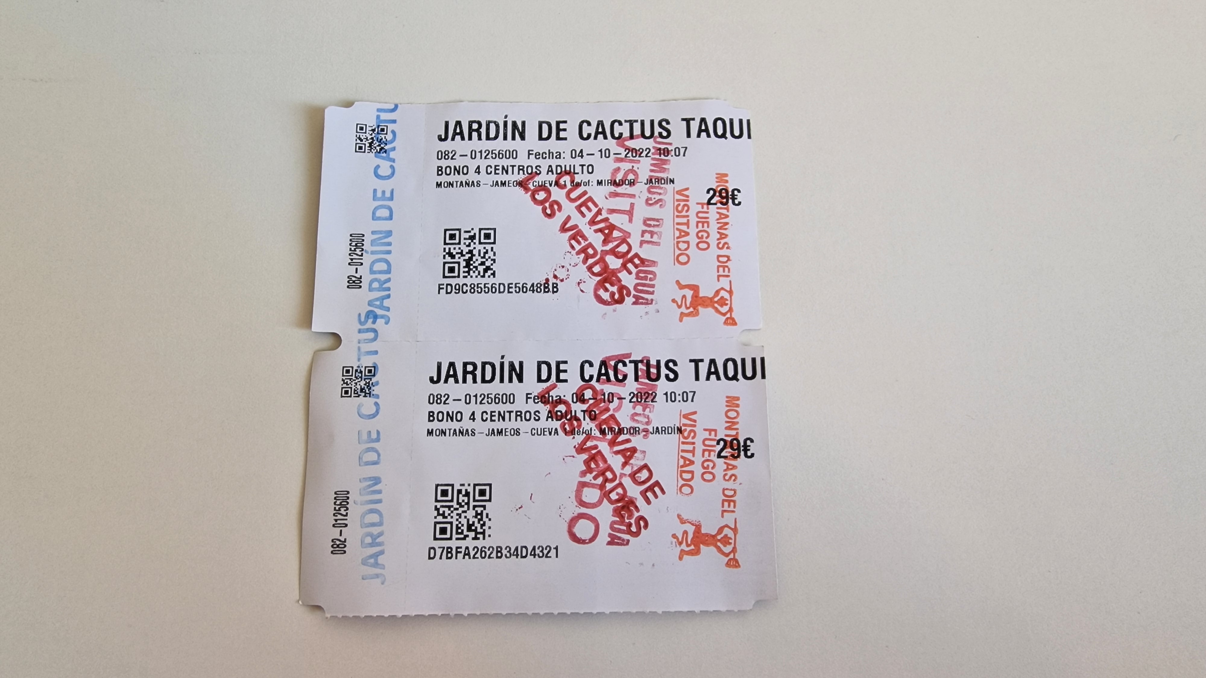 Con la visita a los Jameos del Agua gastamos las cuatro entradas del bono que habíamos adquirido en el Jardín del Cactus. El Mirador del Río preferimos pagarlo aparte puesto que cuesta solo 5€ y no estábamos interesados en adquirir el bono de seis centros (no existe un bono de cinco centros).