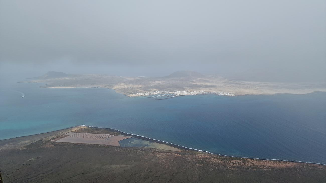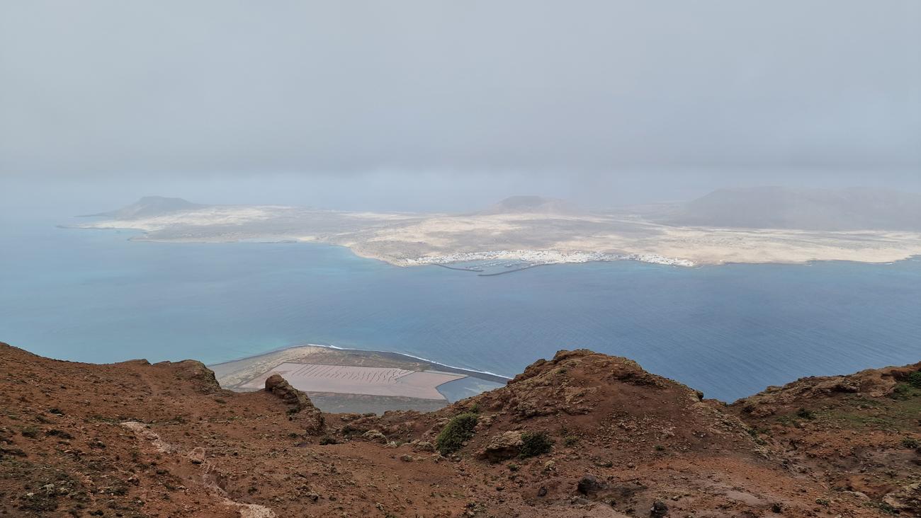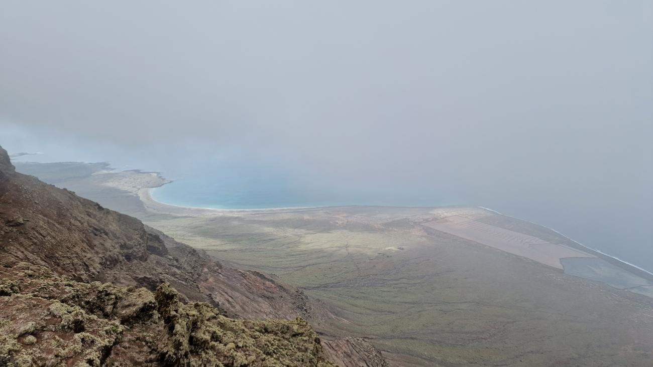 La bruma se mueve con mucha rapidez por lo que las vistas oscilan mucho. Eso da más diversión al asunto porque cuando parece que no se ve nada, de repente se empieza a ver una parte y corremos para sacar fotos como locos. Eso sí, me he quedado con una sensación un poco regular y con las ganas de poder disfrutar en condiciones de la panorámica de la isla de La Graciosa.