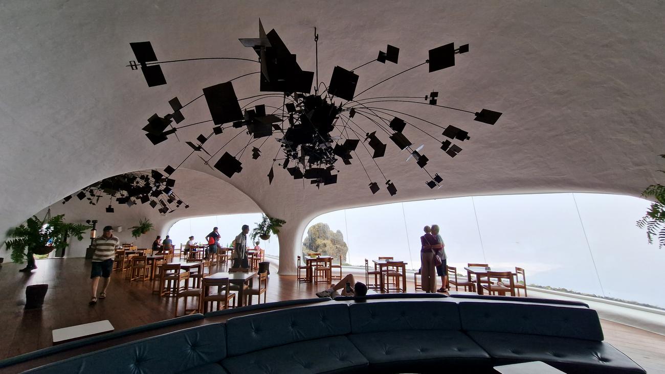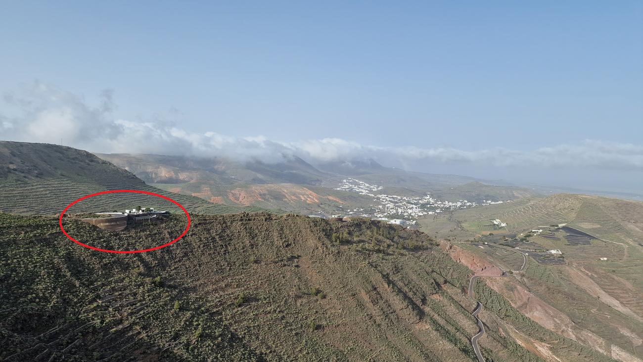 “Nuevamente aparece César Manrique en la creación de este edificio. Situado en un acantilado y construido con roca volcánica con el fin de camuflarlo en el entorno, cuenta en su interior con formas curvas (basándose en que las líneas rectas no existen en la naturaleza) y con un gran aprovechamiento de la luz natural. En él los visitantes pueden admirar las vistas al archipiélago Chinijo y sus tres pequeños islotes“.