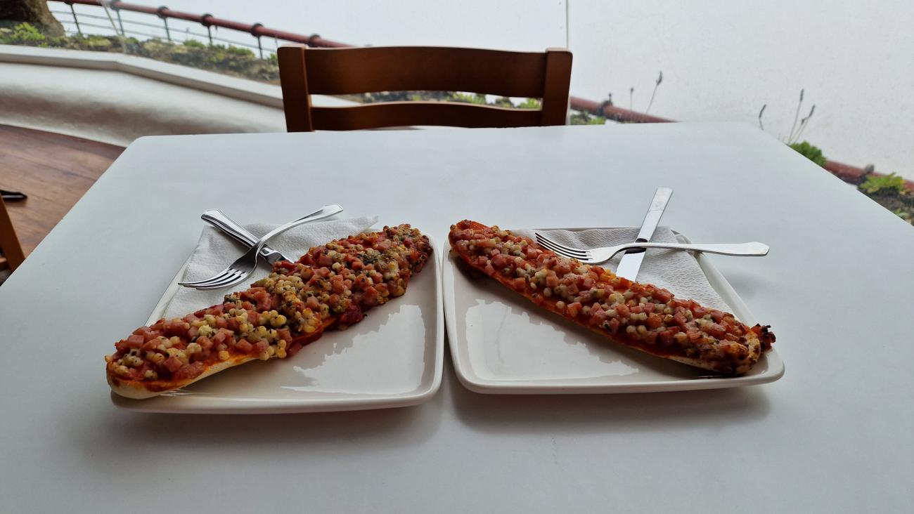 Aprovechamos para picar unos paninis en la cafetería mientras esperamos a que despeje un poquito la bruma. La carta de comidas es bastante básica y unos paninis siempre entran bien.