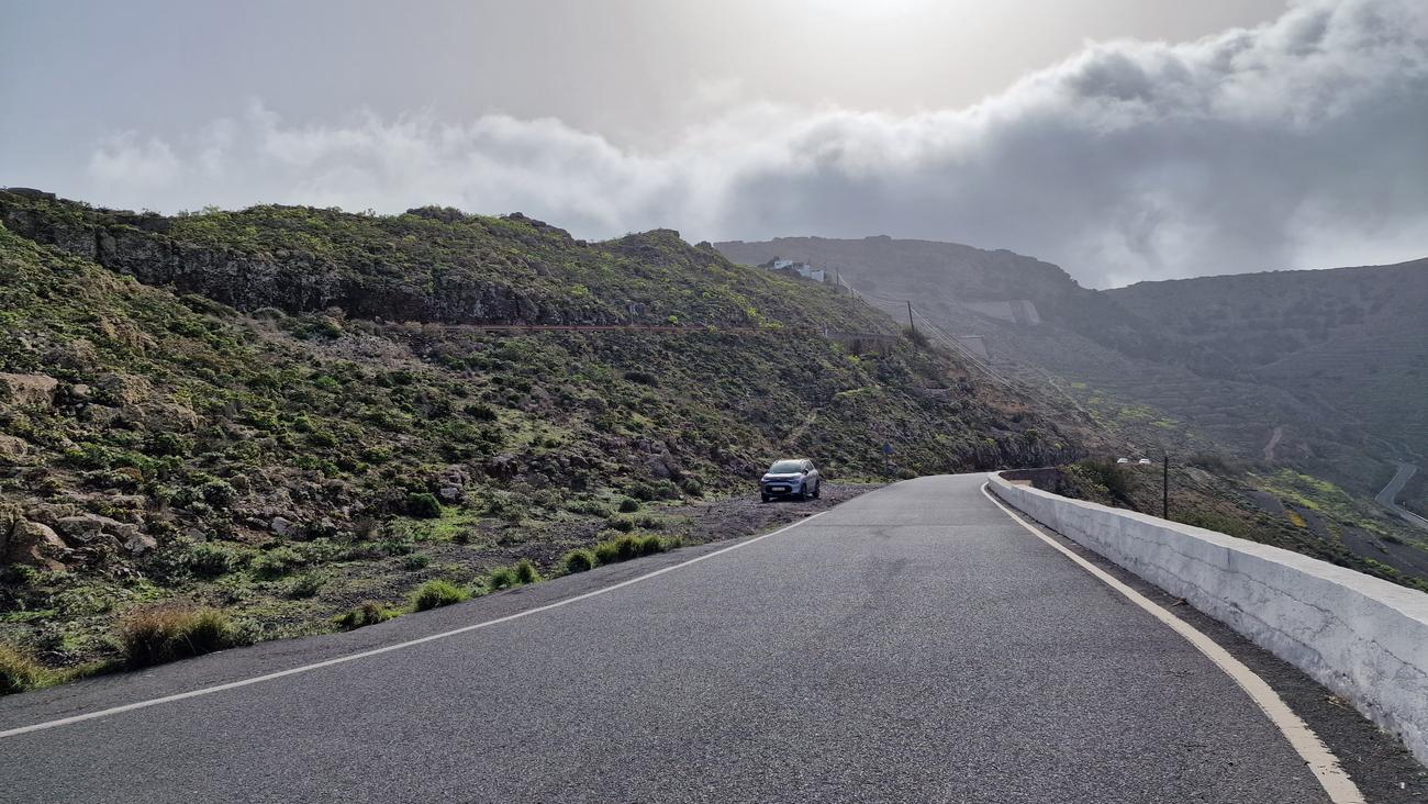 En vista de que el paisaje no acaba de verse de forma nítida, tomamos la carretera LZ – 202 que baja desde el Mirador del Río. La encontramos excesivamente estrecha y nos pone un poco nerviosos tener que conducir por aquí siempre pendientes de dónde nos vamos a meter en caso de cruzarnos con un coche.