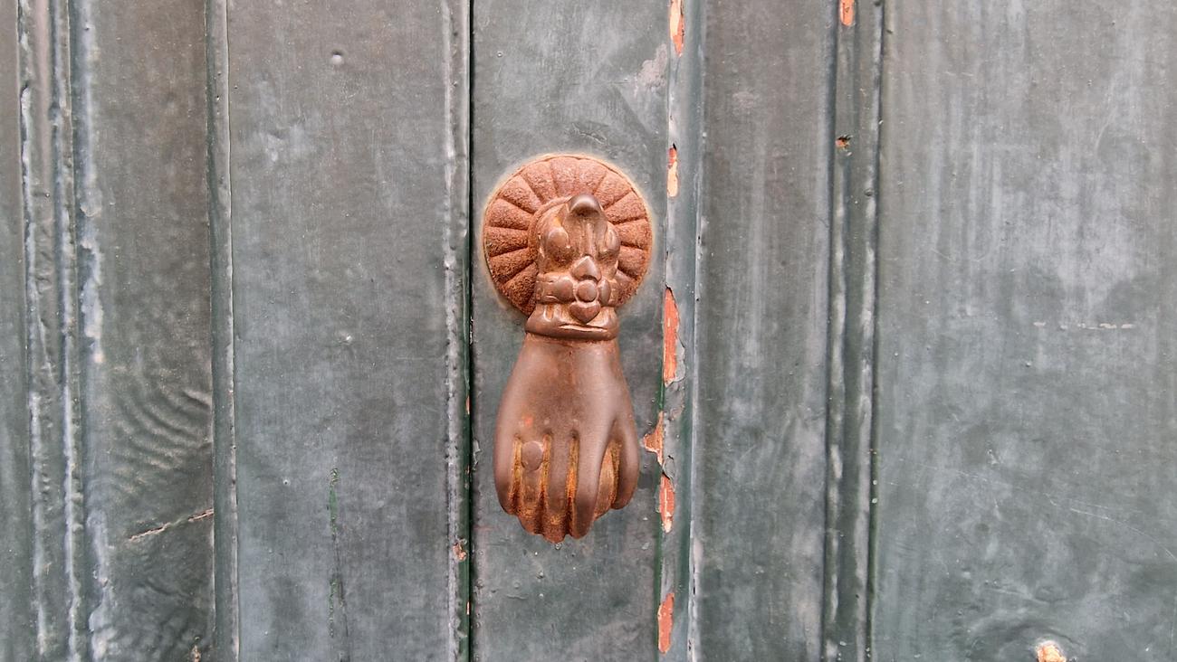 Me resultan de lo más llamativos los variopintos llamadores de las puertas. Nuestra guía nos comenta que se corresponden con distintas influencias y gustos, que se repiten por otros lugares del mundo, a excepción de la mano que agarra la bola, que es de influencia árabe, la “manita de Fátima”. Este tipo de llamador se situaba bien como protección a los residentes de la vivienda o como un medio de información para los inmigrantes que llegaban con el fin de abrirse camino en el recién descubierto Nuevo Mundo.