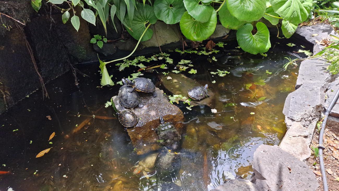 No pudimos reservar con antelación porque no sabíamos a qué hora íbamos a acabar la visita a la casa VandeWalle, pero tenemos suerte porque nos dan sobre la marcha una mesa en la terraza. El lugar es enorme y muy coqueto, con un montón de mini comedores decorados con mucho gusto. Tienen hasta un estanque lleno de tortugas.