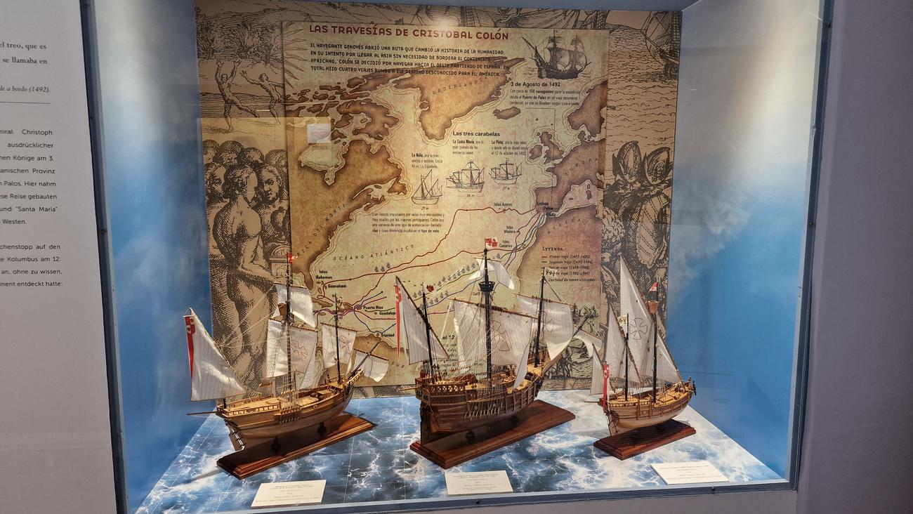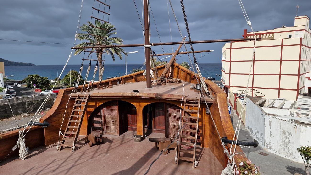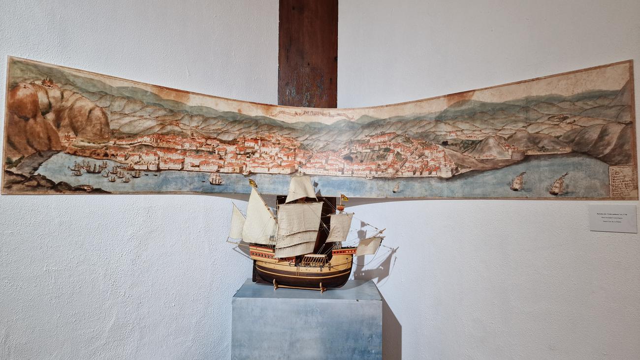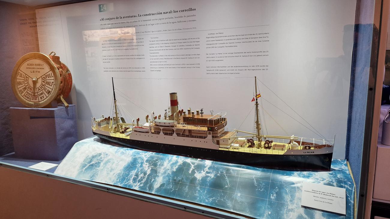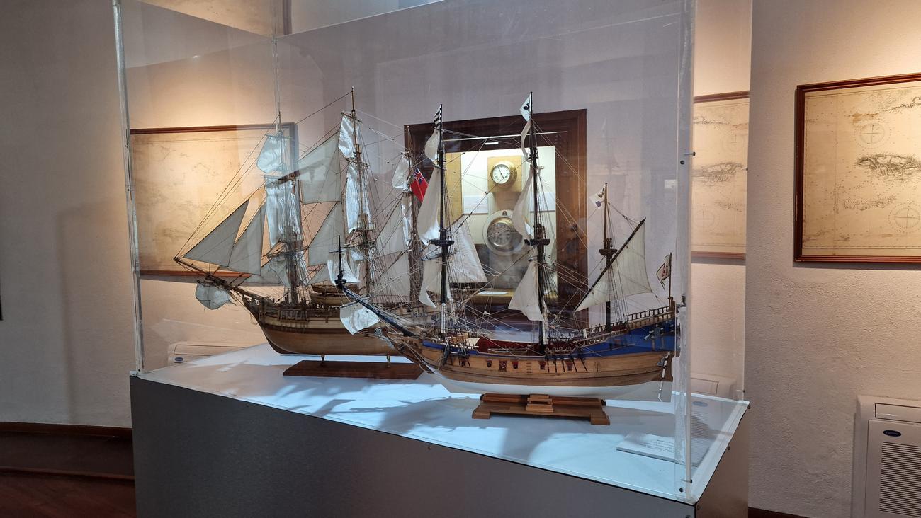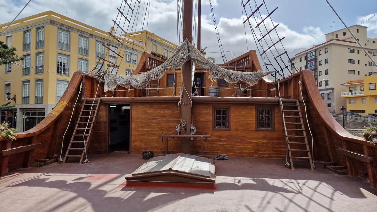 Acto seguido nos dirigimos a visitar el Museo Naval de la ciudad. “Está ubicado en el interior de un barco de cemento (aunque parece de madera), que se creó tomando como referencia la nave Santa María, a bordo de la cual Colón protagonizó el descubrimiento de América. El Barco de La Virgen fue inaugurado durante la Bajada de La Virgen en 1940. Treinta y cinco años después, en 1975, fue fundado el museo en el interior de dicha nave. Constituyen la exposición materiales de diverso género que retratan la vida marítima local: portulanos del mar Caribe y el golfo de México, mapas y cartas marinas del archipiélago canario, maquetas de buques construidos en los astilleros de la ciudad durante el siglo XIX…
