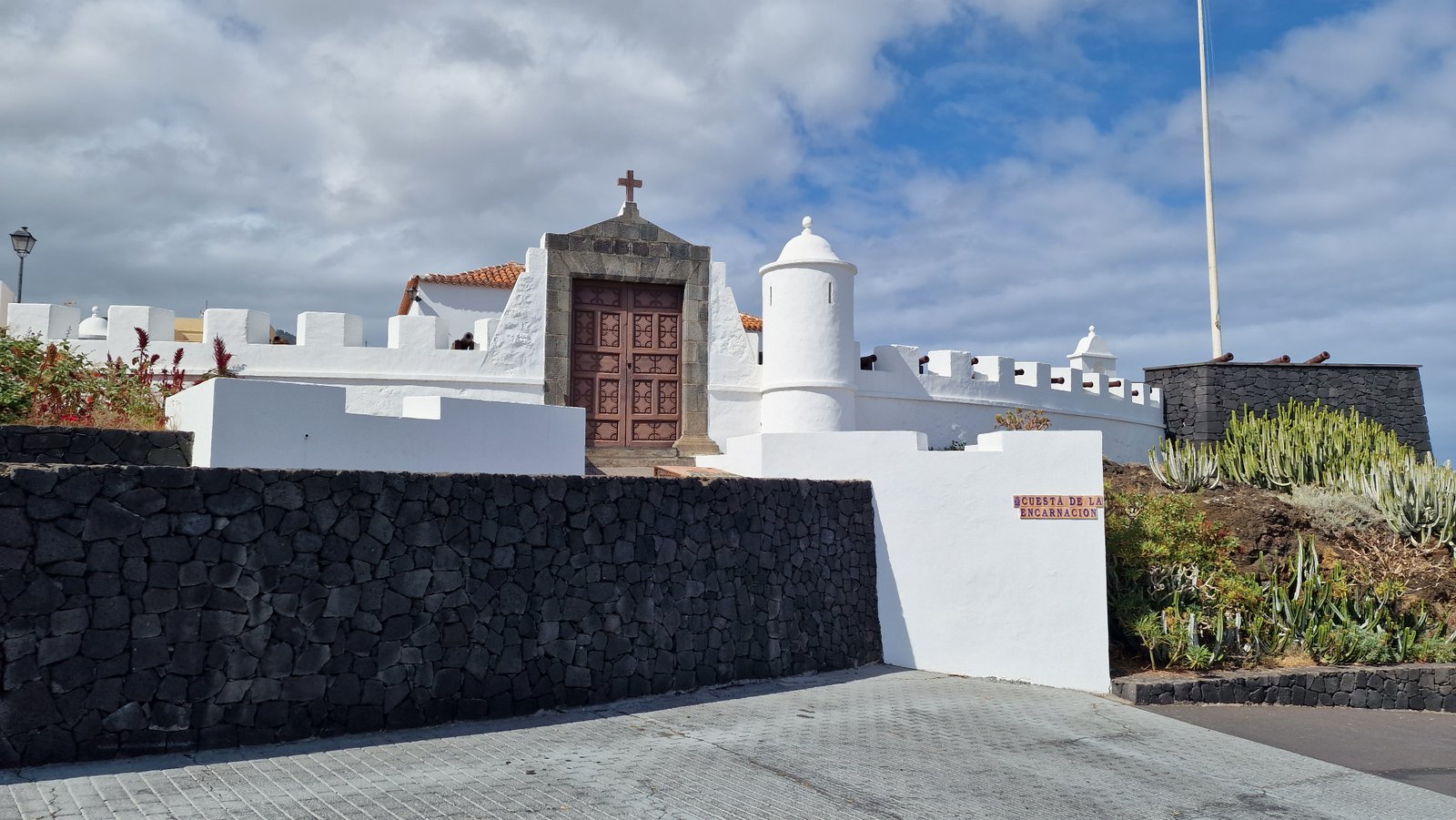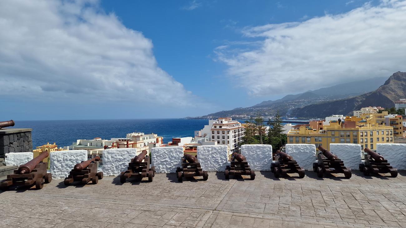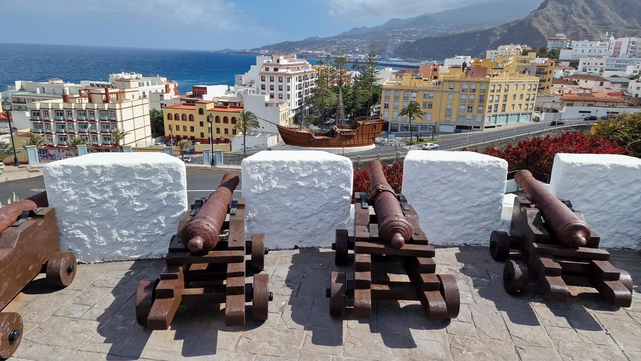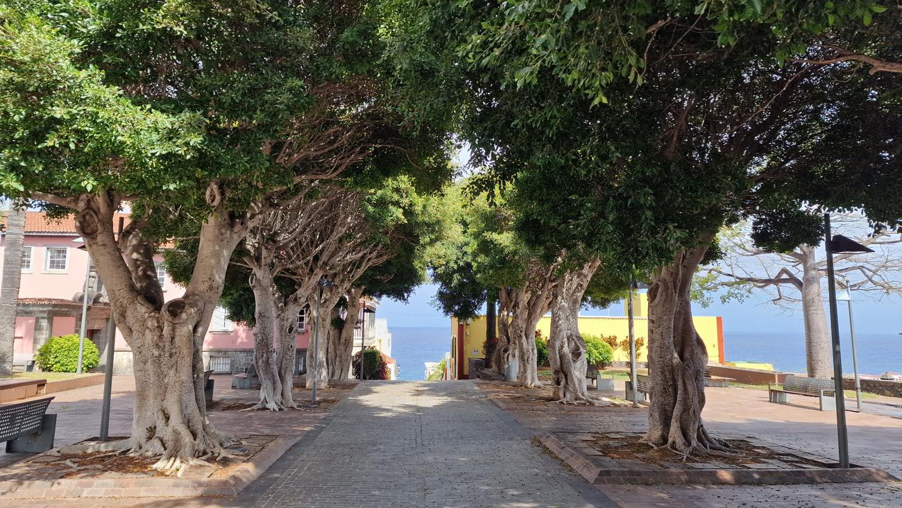 Volvemos hacia Santa Cruz de La Palma y estacionamos cerca de la plaza de La Encarnación. Atravesamos esta plaza que se encuentra resguardada de la solana con laureles de indias más jóvenes que los que descubrimos el lunes en la plaza de España de Los Llanos de Aridane, y enlazamos con la carretera de La Encarnación hasta llegar al castillo de la Virgen.