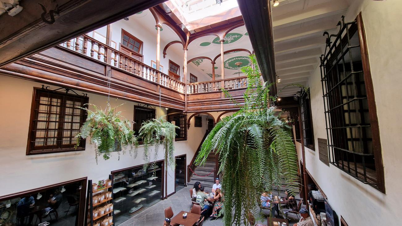 Hemos elegido el famoso café Don Manuel para hacer un descanso. “Está situado en el interior de la emblemática casa Cabrera Martín. Se trata de una casa con historia, ligada al importante empresario Cabrera Martín, muy activo en los comienzos del siglo XX. El café ocupa el espectacular patio de la casa“.