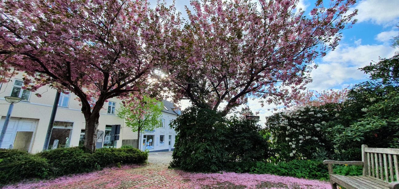 Lo que más me llama la atención nada más bajar del coche, aparte de lo tranquilo que se ve Fredensborg, es que el pueblo está lleno de maravillosos árboles floridos. ¡¡Me encantan!!