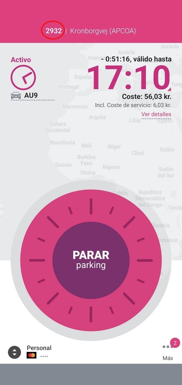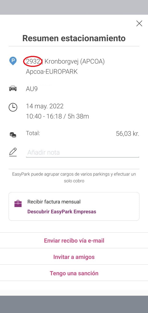 A lo largo de la mañana he ido ampliando el horario del parking a través de la aplicación EasyPark. Cuando vamos a recoger el coche, nos sobran cincuenta minutos y solo tengo que pulsar en la misma app “parar parking”. Hemos estado un total de 5 horas 38 minutos y nos cobran por ello 56,03 DKK (7,53€).