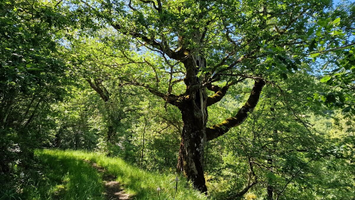 Es cierto que en momentos puntuales podemos atisbar el valle entre la arboleda pero la visión no me resulta espectacular… No hay agua, no hay bancos con vistas, no hay potrillos corriendo por las praderas… Cada vez que realizo una ruta por la zona traigo las expectativas altísimas y en esta ocasión no se están cumpliendo.