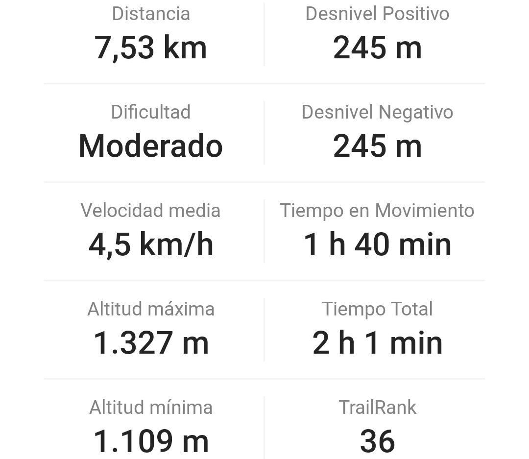 • Distancia total (ida y vuelta): ≈ 7,5 km.