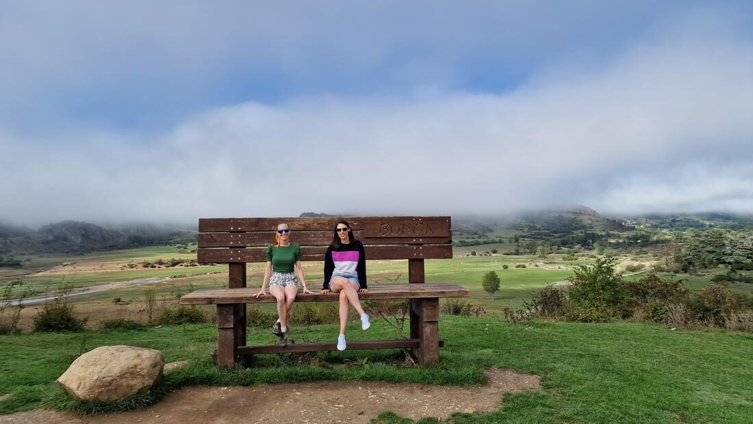 Este es el último banco que exploramos uno de los días en los que estuvimos “a la caza de los bancos más bonitos”. Las panorámicas desde aquí son bellas pero no me resultaron impactantes porque el sol ya no iluminaba las laderas y porque era el cuarto banco del día que descubríamos después de haber hecho por la mañana la ruta por el bosque de Matapiojos en Boca de Huérgano, por lo que estábamos agotadas.