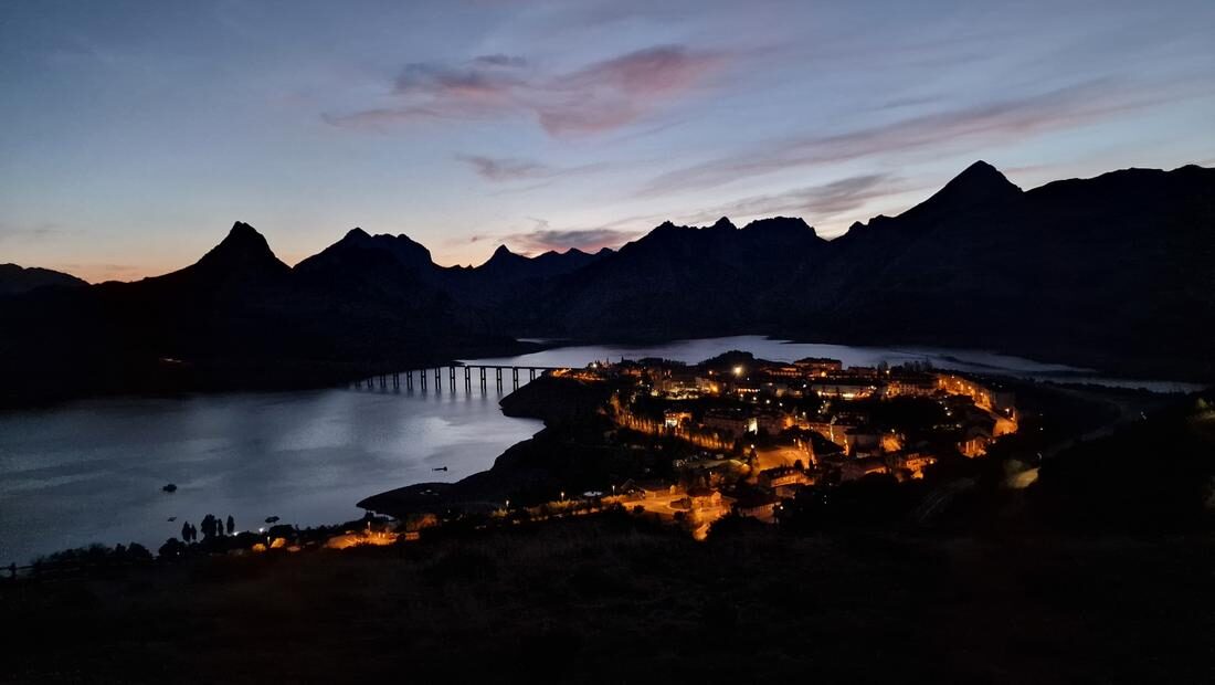En solo siete minutos de ascenso llegamos al mirador de Las Peñicas o, más bien, al paraíso. Nunca había visto fotos desde esta ubicación y me quedo sencillamente boquiabierta. El hecho de que el pantano esté al 93% de su capacidad pone un marco mágico a una escena ya de por sí bellísima. Cuando vine a esta misma zona en septiembre del año pasado los caballos pastaban a sus anchas por las praderas ubicadas detrás del pueblo. Los juegos de luces y sombras sobre las cumbres atrapan mi corazón al instante.