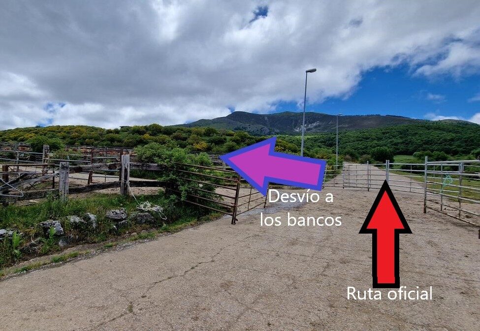 Para llegar a los dos bancos más bonitos de Acebedo debéis desviaros un poco de la ruta oficial al llegar a un enorme cercado para ganado.