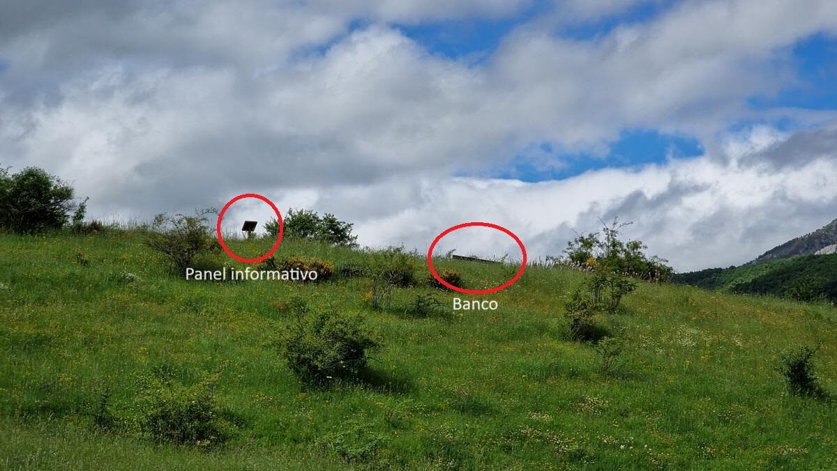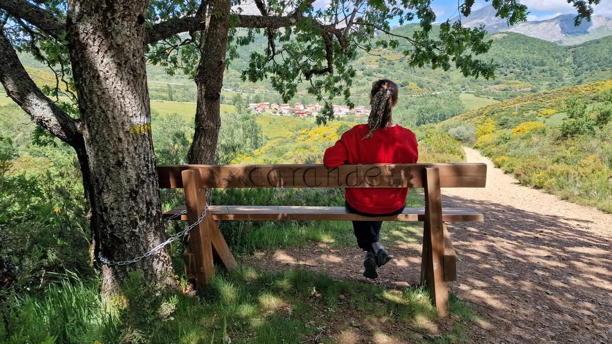 Tardo menos de cinco minutos en llegar a la cima y descubro que el banco se encuentra justo ahí. ¡Qué bien! No me ha costado nada llegar y eso que voy en vaqueros y no traigo ni los bastones de trekking. A mi madre y a mi amiga Lidia les digo que desanden camino y traten de buscar un acceso más cómodo. En un principio no lo localizan y se dan por vencidas pero, ya en la retirada se encuentran con un segundo vecino que nuevamente les da indicaciones y por fin consiguen subir.