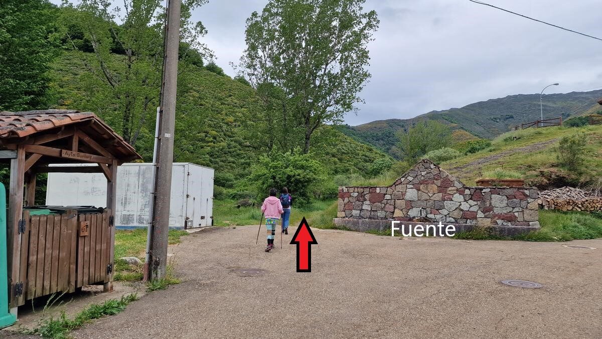 - Junto al potro de herrar del pueblo encontramos una segunda señal al lado de una segunda fuente, que nuevamente nos indica que debemos girar a la derecha.
