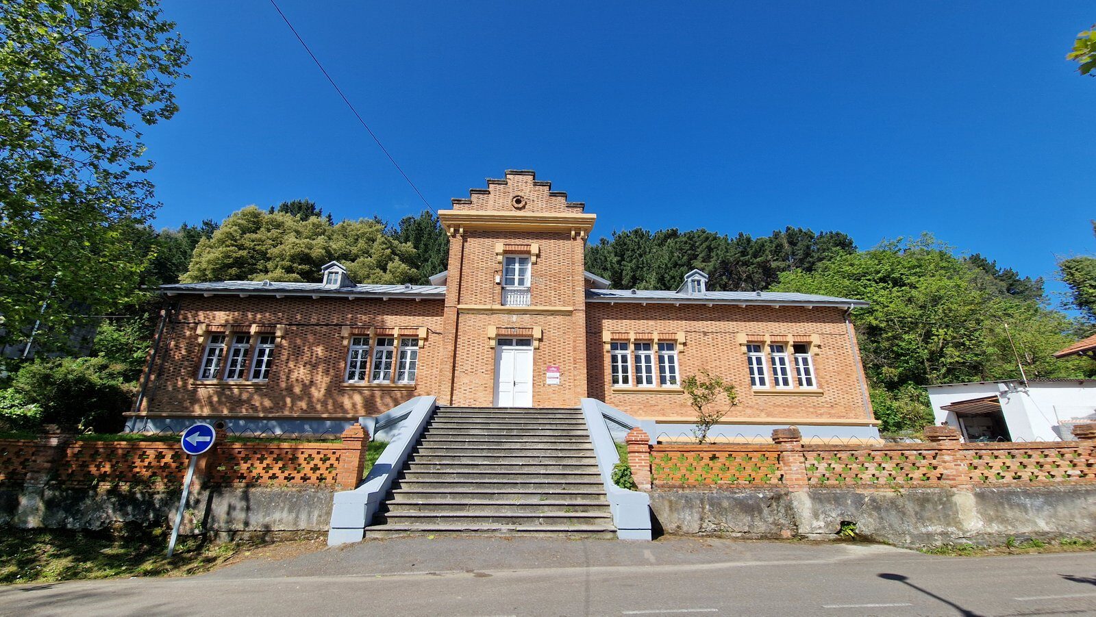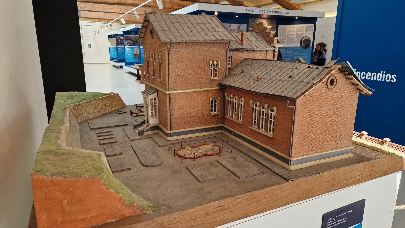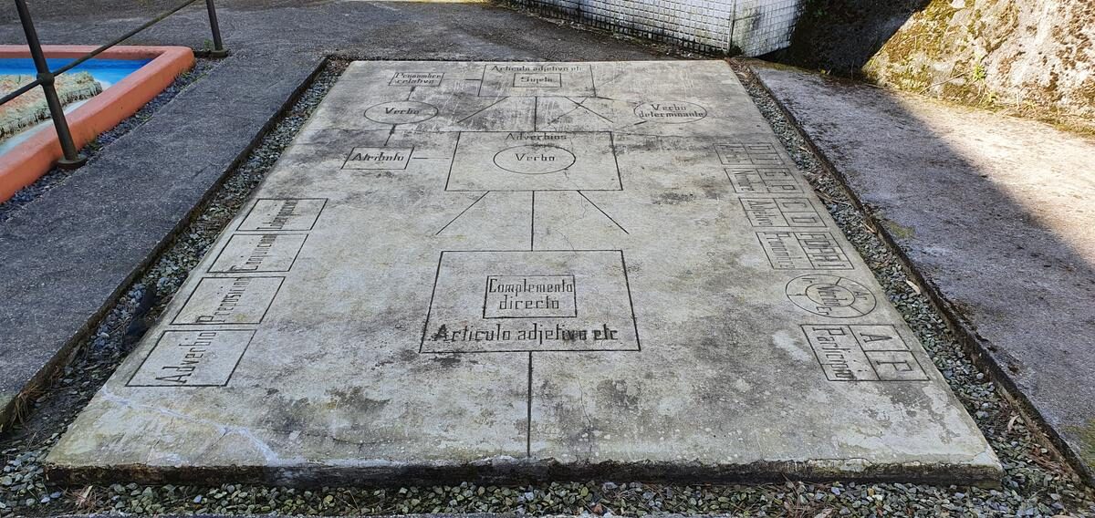Frente al estacionamiento se encuentran las escuelas del Ave María. Inauguradas en 1913 por la Real Compañía Asturiana de Minas (RCAM), se construyeron para ofrecer educación a los hijos de los trabajadores de la empresa, en el contexto de las políticas paternalistas y filantrópicas de la época. Destacaban sus instalaciones modernas para el momento, como mapas físicos, formas geométricas en tres dimensiones, relojes didácticos y rayuelas para el estudio de la historia, elementos que hacían del patio un aula principal, siguiendo la pedagogía del Padre Manjón. Recientemente se han restaurado los componentes didácticos originales del patio y se pueden visitar de forma gratuita.