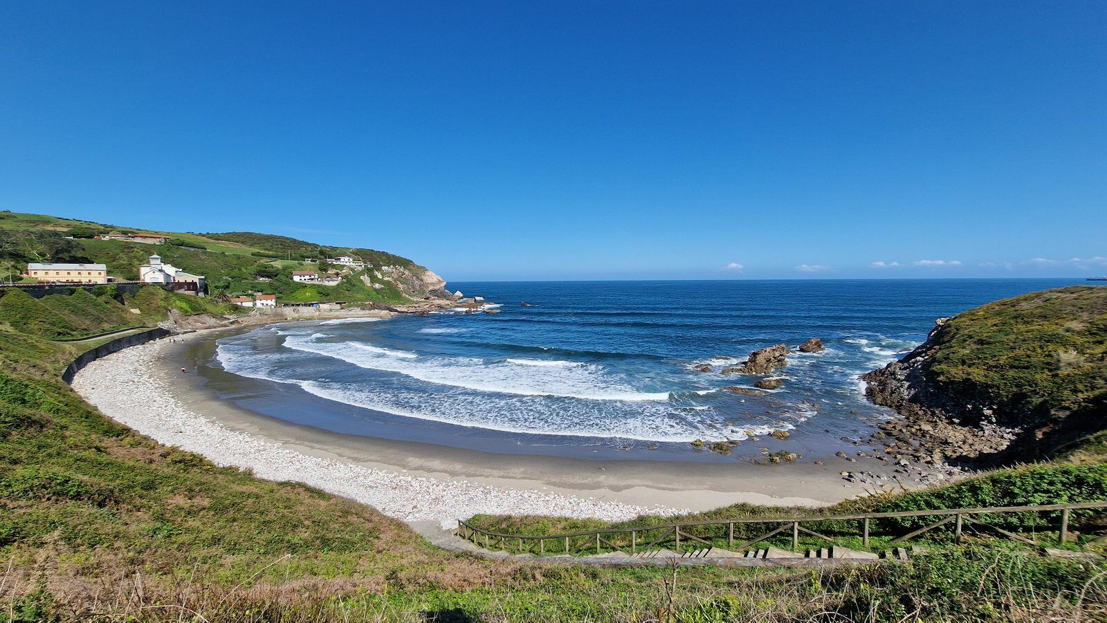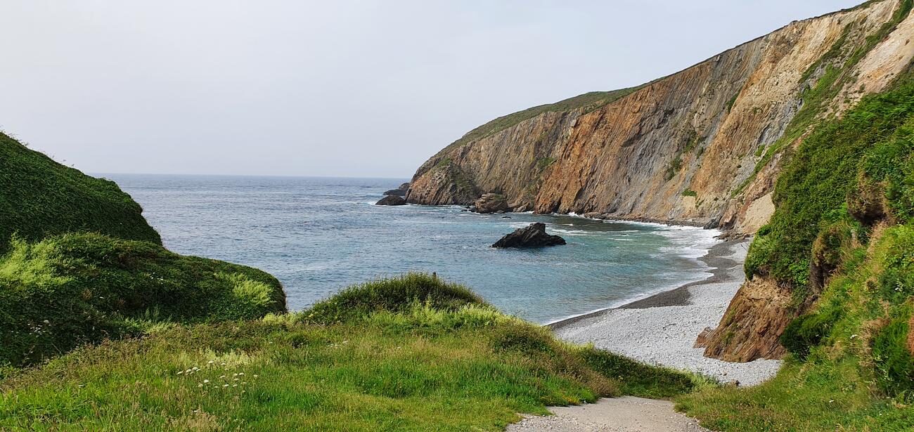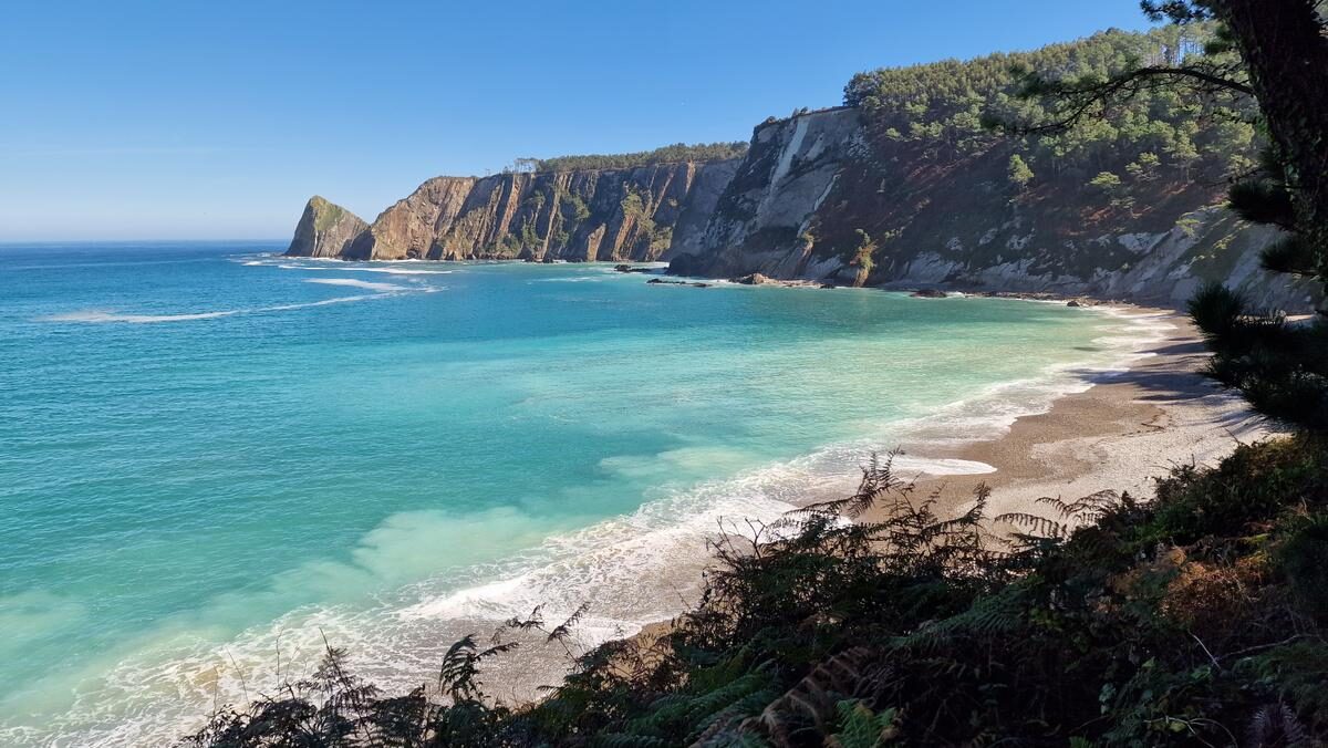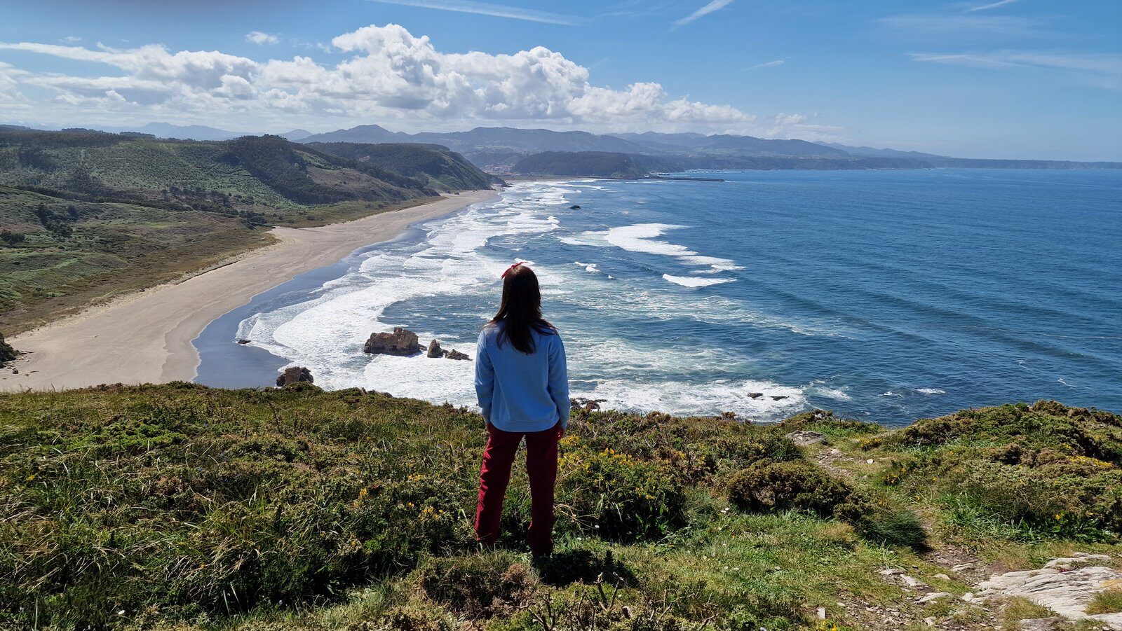 Me siento una absoluta privilegiada por vivir en Asturias y por poder contemplar sin nadie más a nuestro alrededor: las verdes montañas, la enorme playa, el mar y el cielo tan azul con los acantilados al fondo. Es todo tan increíblemente bello y más teniendo en cuenta lo malísimas que eran las previsiones climatológicas para esta semana… Ahora mismo soy plenamente feliz. Esto es Asturias en estado puro.