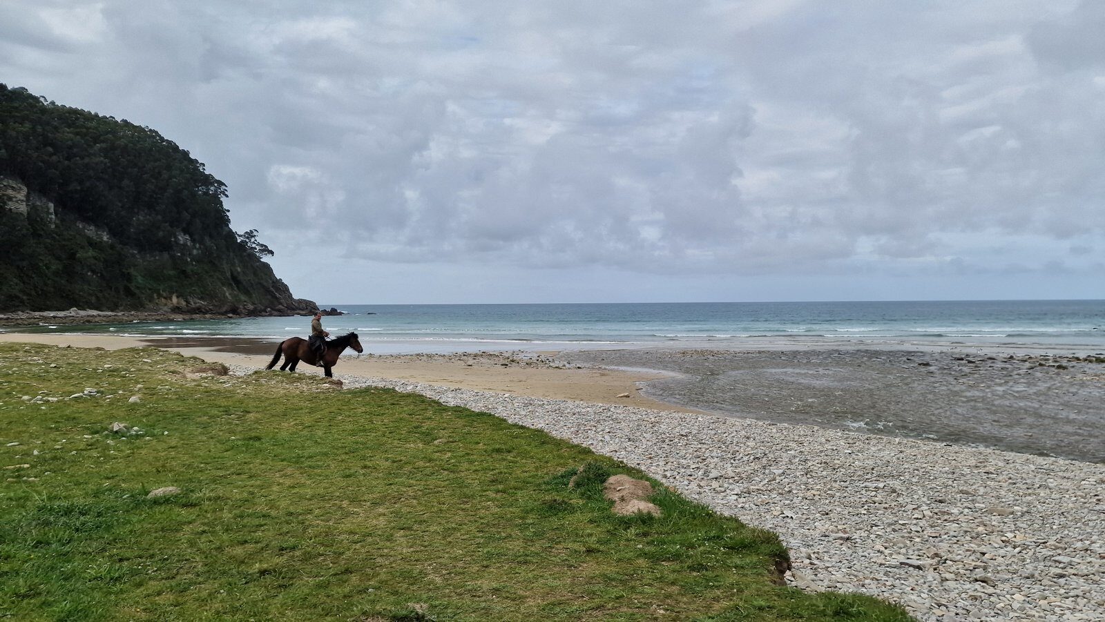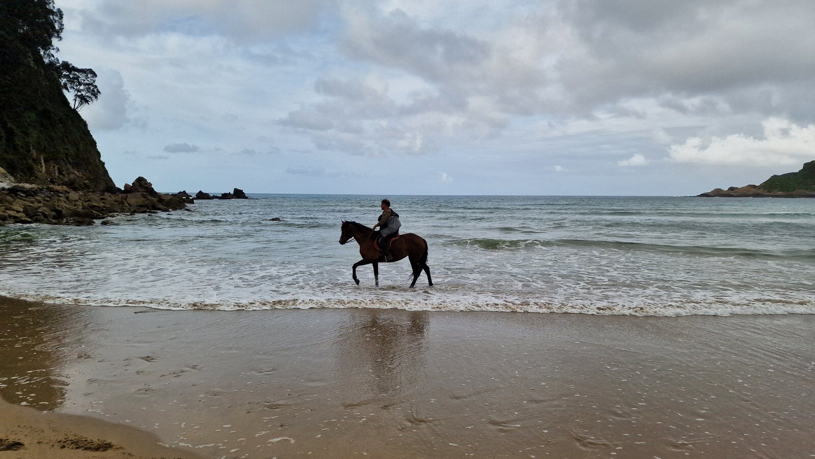 Al principio me costó un poco coger el tranquillo pero, una vez que Helmout y yo nos conocimos mejor, pude disfrutar un montón de la actividad, sobre todo del largo periodo que pasamos recorriendo la playa de San Pedro de la Ribera. Cruzamos ríos, paseamos entre las olas, las chicas que sabían montar a caballo echaron varias carreras galopando a la orilla del mar…